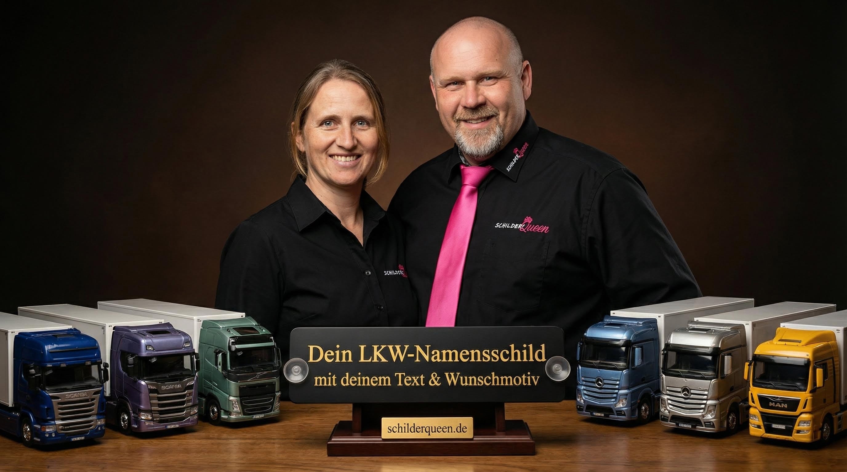 Seit 2011 ist SchilderQueen.de dein Online-Shop für personalisierte LED-Namensschilder für LKWs, hochwertige Firmenschilder und kreative Geschenkideen. Jedes Produkt wird individuell nach Wunsch gestaltet und in hoher Qualität gefertigt.