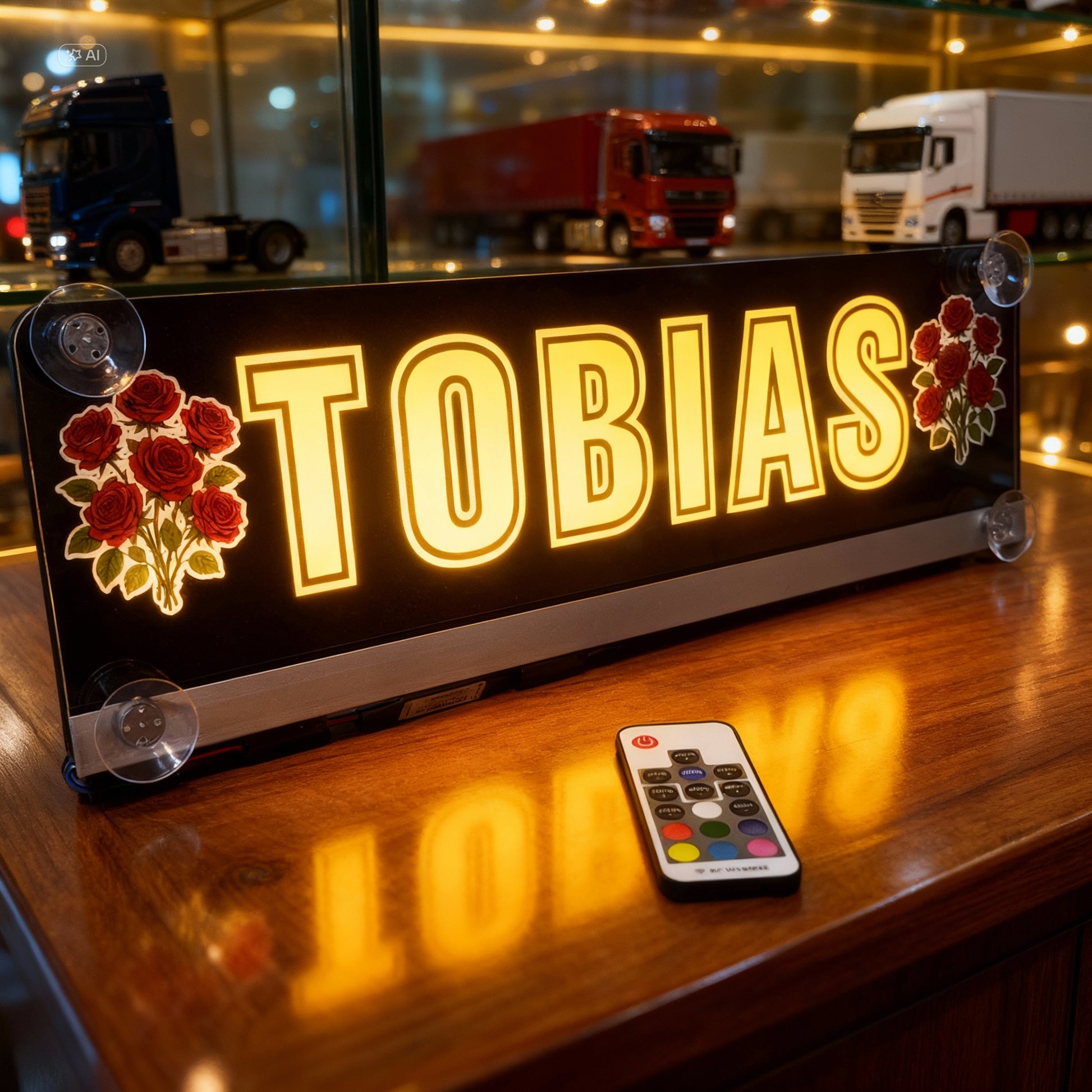 LED Namensschild für LKW mit Saugnapf und mit deinem Wunschmotiv